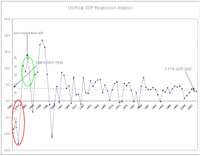 In the chart of the US Real GDP which covers the Great Depression period 1930-1939 we had 4yrs (1930-1933) of sub-zero growth but then swung to 4yrs of strong growth (1935-1937). I believe that this history is a useful guide to the resilience of the American economy in response to highly negative financial events of our own creation.
