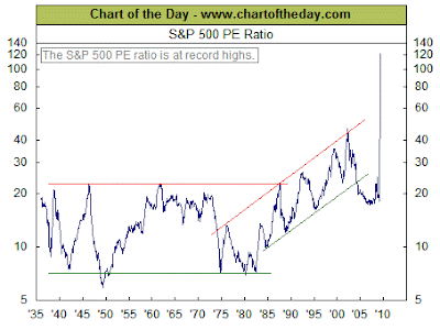 With S&P earnings as of last Friday at $7.21, it will not talk much improvement for the PE ratio of the market to be brought down by even a modest earnings improvement. For reference, last year at this time the S&P had earnings of $62 and sat at 1400 vs 888 today. For the market to sit where it is and have its PE fall to around a more “normal” 20 times earnings, they must increase 485% to $45.