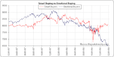 “This is an index that is prefaced upon the principal that the trading during the first 30 minutes of each day is very emotionally based, and depends so much upon the fresh “hype” of the morning news and media “talk.” That is considered “dumb” money. But the trading in the last one-hour of trading is not very news motivated at all, in fact it is based solely upon the overall reasoned out logic and analysis. That is considered “smart” money. So the cumulative index simply subtracts the performance of the Dow during that first 30 minutes, and adds the performance of the last one-hour. The signals come when the “Smart Money” index does not confirm the new highs or lows of the Dow Jones Industrial Average’s.”